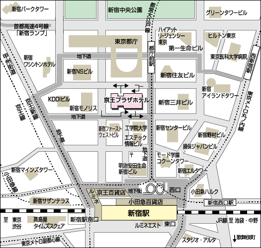 - 京王線・小田急線・地下鉄(東京メトロ丸の内線・ 都営新宿線)新宿駅下車 徒歩5分。